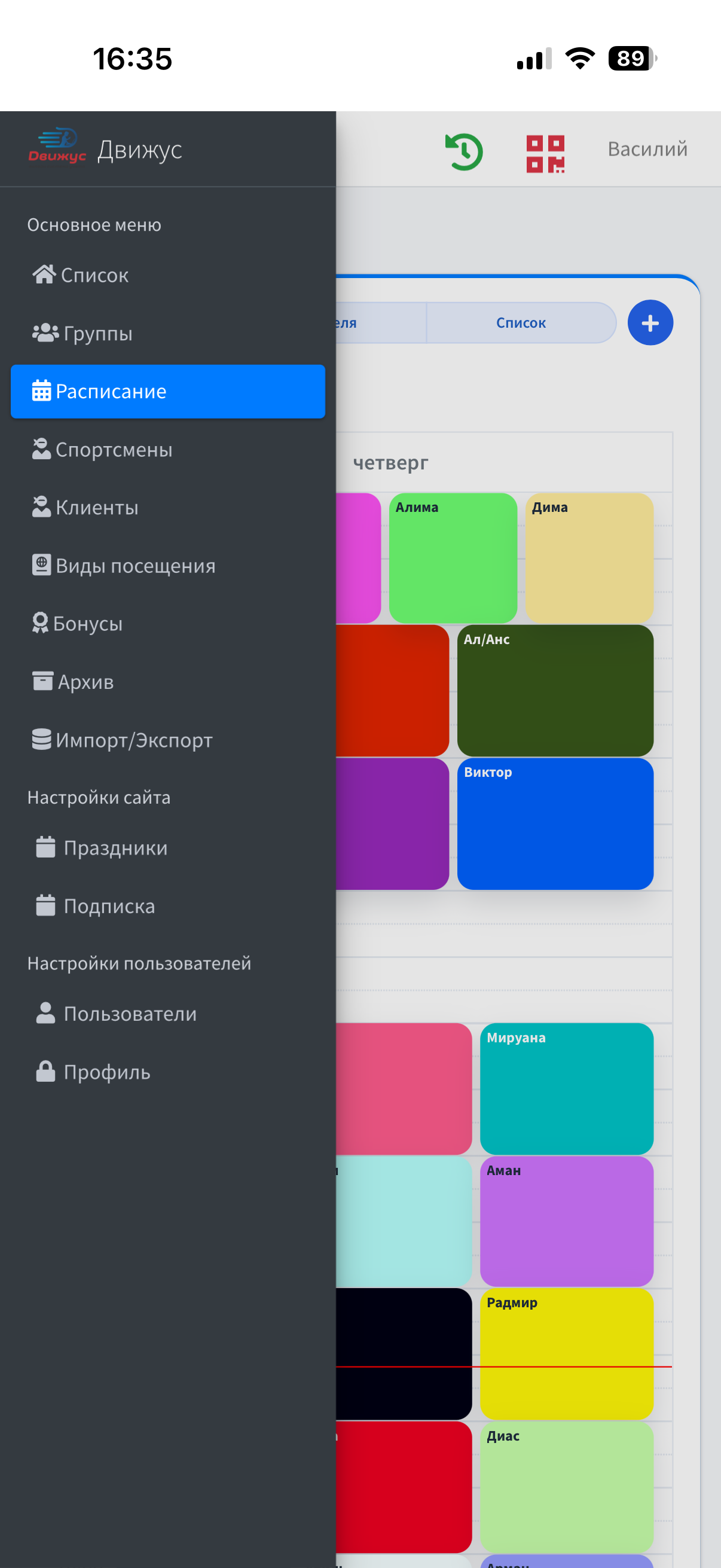 Система Движус предназначена для управления потоком клиентов, контроля личной информации занимающихся, учета посещений, пропусков занятий и своевременной оплаты.